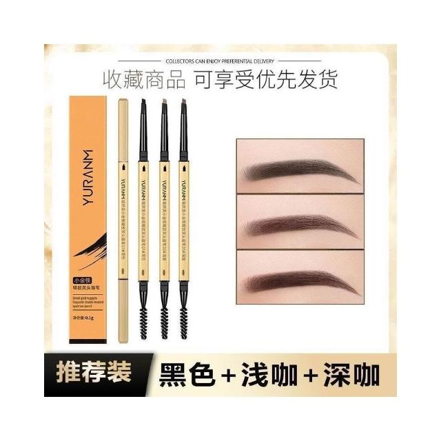 文文精品 小金筷眉筆雙頭三角極細持久超細立體生眉新款卡其色女學生黨自然