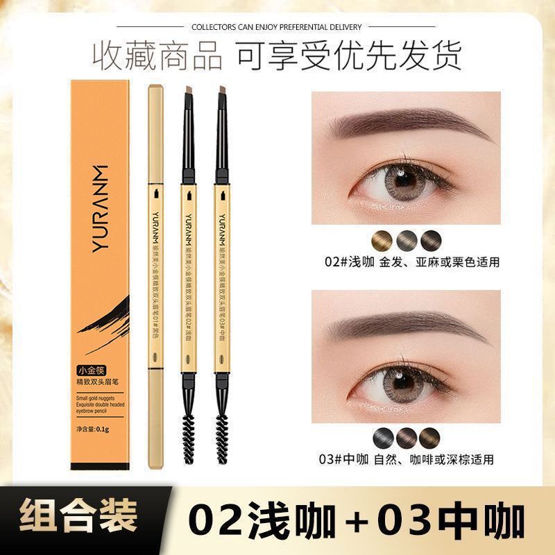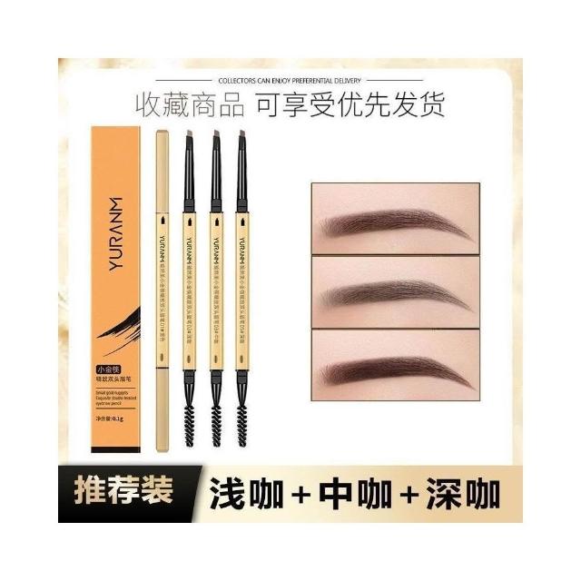 文文精品 小金筷眉筆雙頭三角極細持久超細立體生眉新款卡其色女學生黨自然