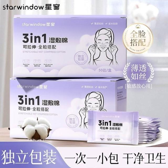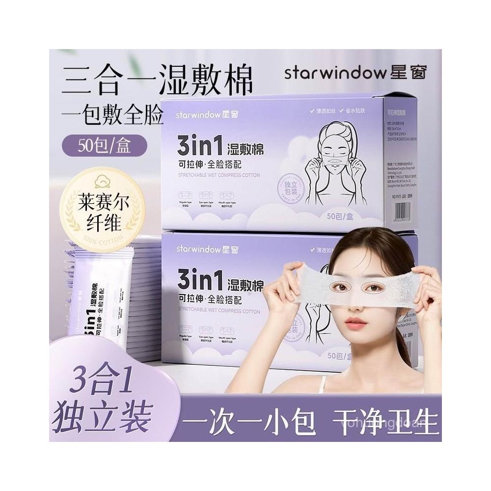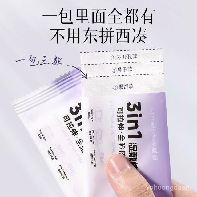 優美甄選 星窗獨立裝三閤一濕敷棉眼部鼻子臉部開孔可拉伸超薄專用敷臉補水