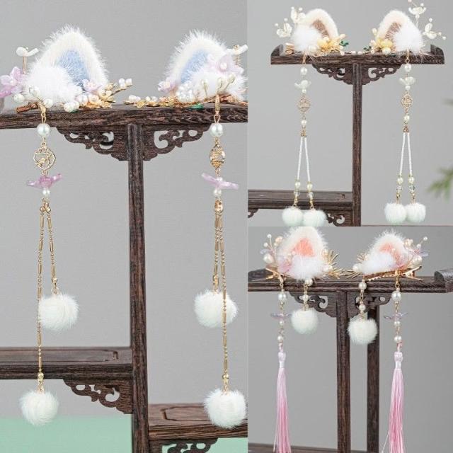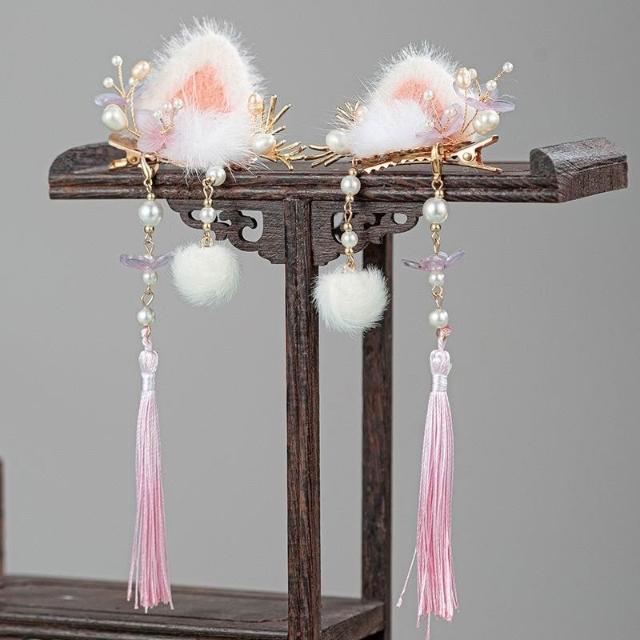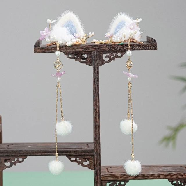 明明嚴選古風漢服可愛唯美秋冬貓耳日常漢服搭配流蘇可愛兒童頭飾毛絨對夾
