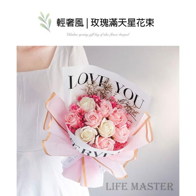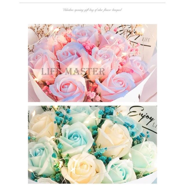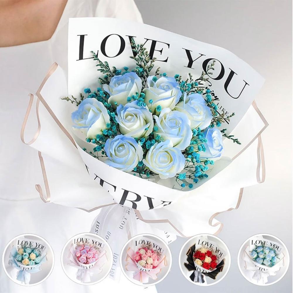 玫瑰花束 小香風碎冰藍 香皂花 滿天星花束送禮袋 聖誕節 送女朋友閨蜜老婆老師仿真香皂花禮物生日禮物表白求婚
