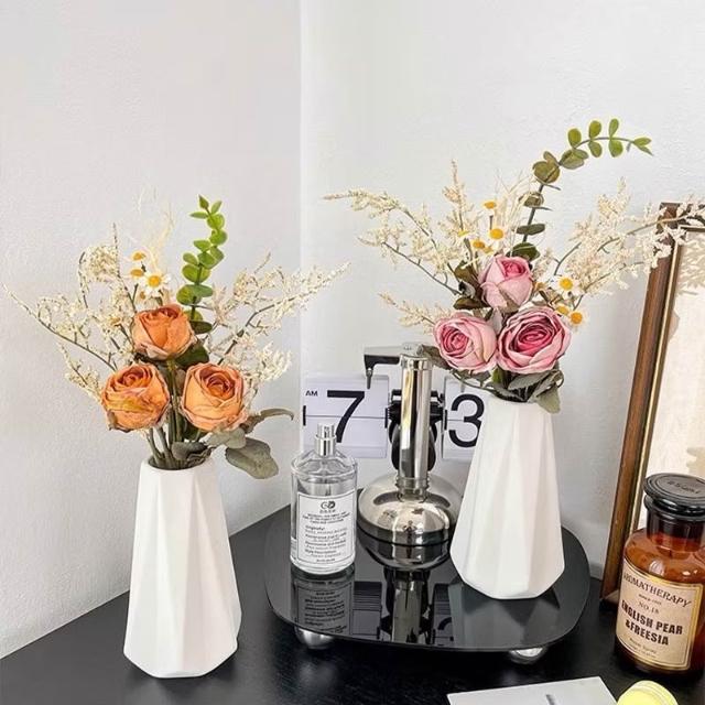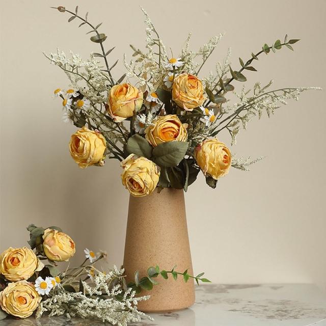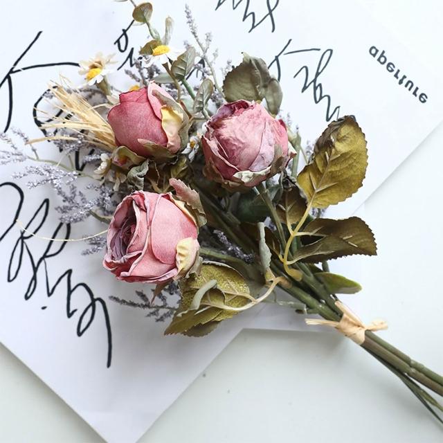 🌹復古玫瑰雛菊花束🌹 復古烤邊玫瑰 乾燥花 仿真花 玫瑰花束 小雛菊 情人草 假花捧花 婚紗拍攝道具 桌花 花瓶擺飾