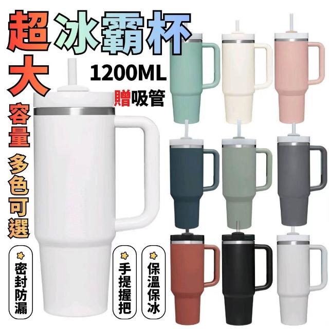 冰壩杯1200ML 大容量 304不鏽鋼 保溫保冷 冰霸杯 飲料杯 隨行杯 環保杯 手把保溫杯 吸管杯