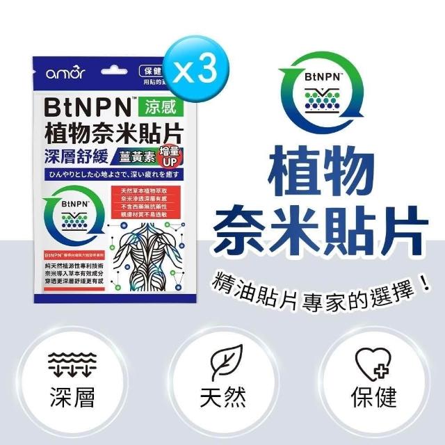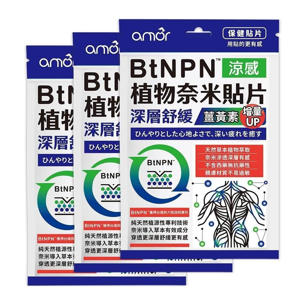 麗臺生醫amor BtNPN植物奈米貼片 薑黃素增量版 x3包共18片(痠痛貼布/涼感貼片/深層舒緩)