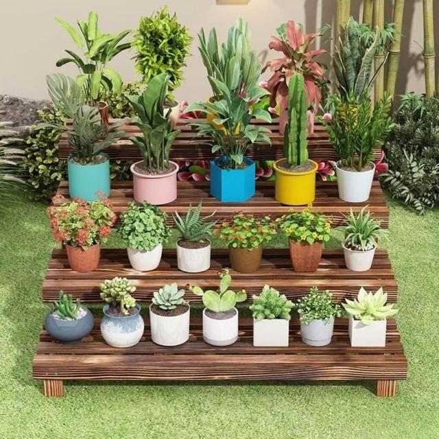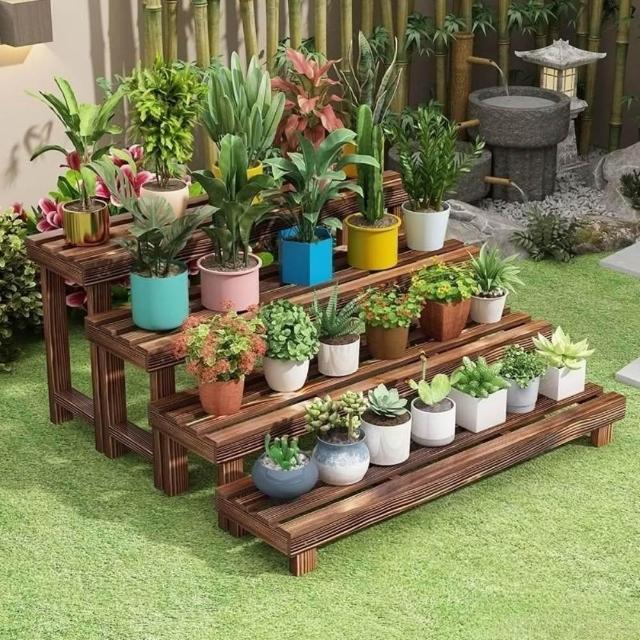 花架置物架實木碳化階梯式多層落地陽臺防腐室內戶外綠蘿花盆架子