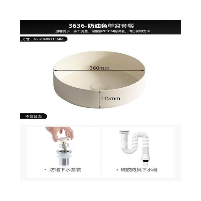 『破損包賠』免運🚛輕奢陶瓷洗手盆 簡約奶油圓形臺上盆小尺寸洗臉盆衛生間家用麵盆陶瓷陽臺藝術單盆 洗手盆 洗臉盆