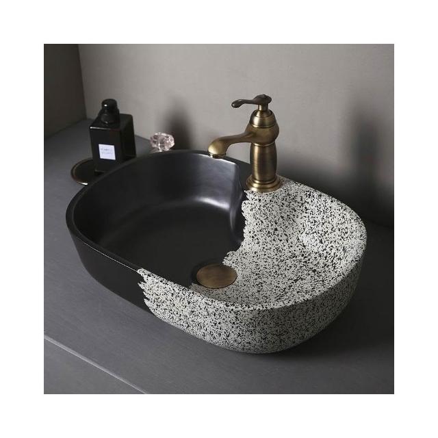 破損包賠 輕奢陶瓷洗手盆 陶瓷洗臉盆 臺上盆 黑白衛生間陶瓷洗手盆 橢圓形洗臉盆 橢圓形個性創意浴室洗手池 ❤️打統編