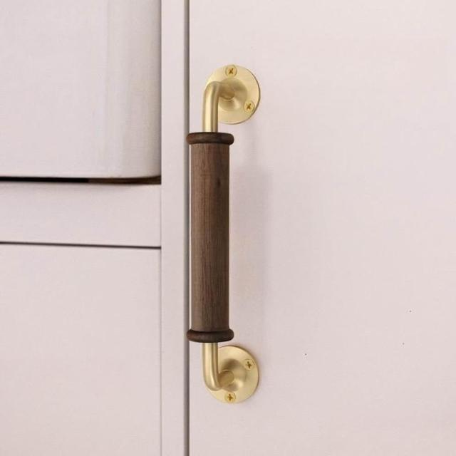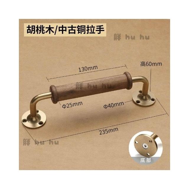工廠直銷♥(免運)高檔輕奢黑衚桃木櫃門拉手 櫥櫃衣櫃木門拉手 黃銅底座明裝門把手