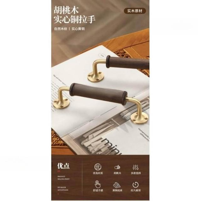 工廠直銷♥(免運)高檔輕奢黑衚桃木櫃門拉手 櫥櫃衣櫃木門拉手 黃銅底座明裝門把手