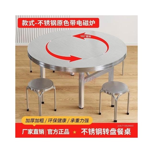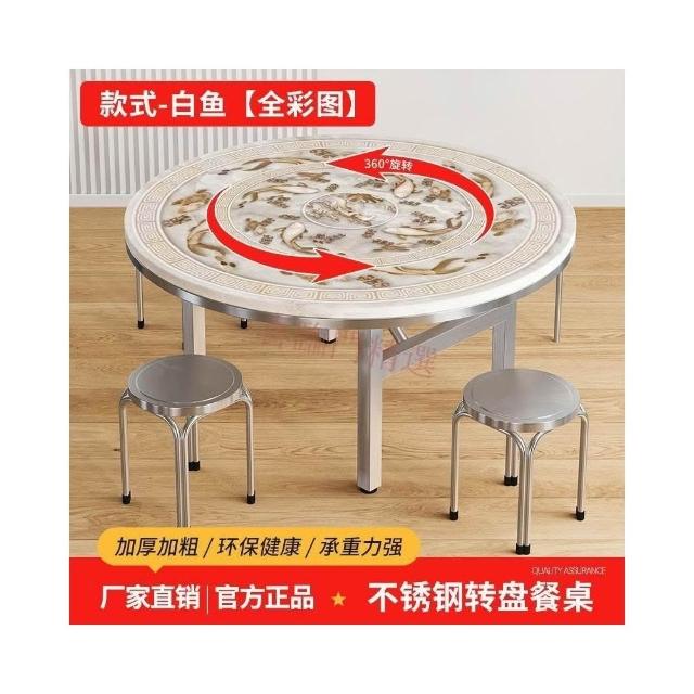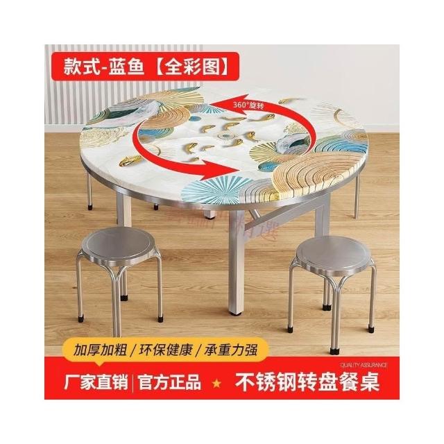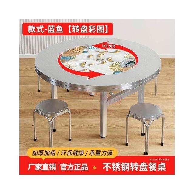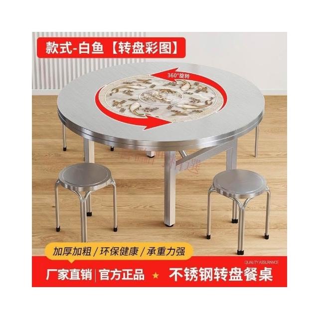 免運🚛304不鏽鋼餐桌 全不銹鋼桌子 加厚3D彩圖不鏽鋼餐桌 可拆卸折疊 喫飯桌 不鏽鋼圓桌 休閒桌 白鐵桌 可開發票