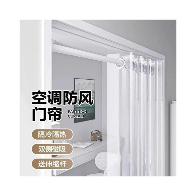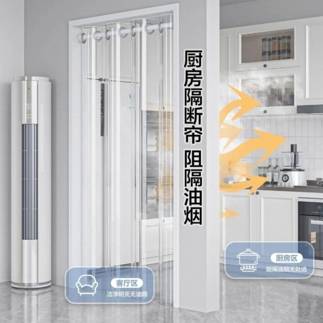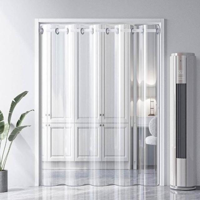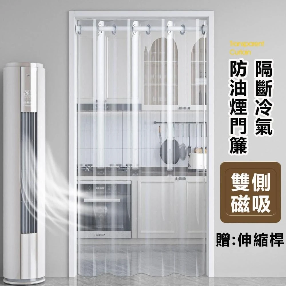 全透明隔斷簾 免打孔pvc透明廚房防油煙防水防黴 遮擋透明 冷氣門簾 空調客廳隔斷 阻擋冷氣 透明簾 送桿子