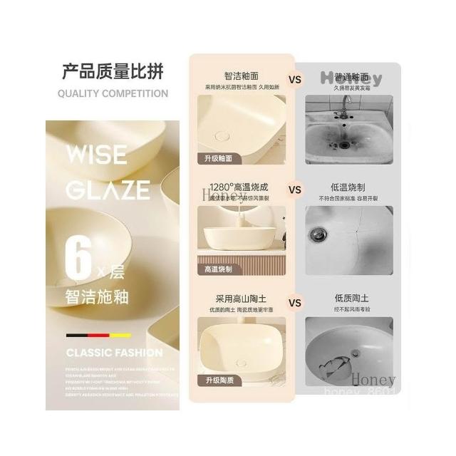 工廠直銷♥(免運)臺上洗手盆 奶油家用陶瓷洗手盆 陽臺衛生間網紅洗臉盆 洗麵盆