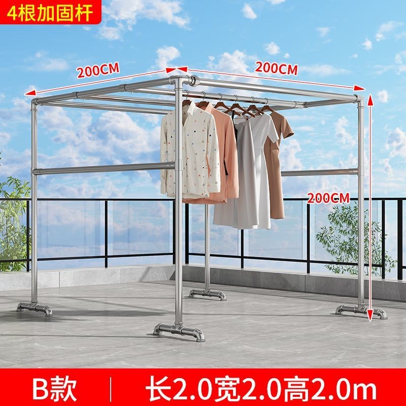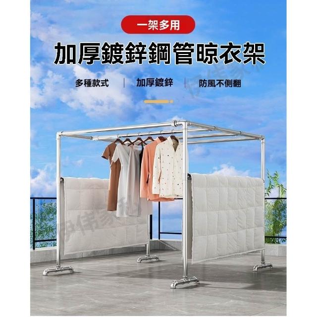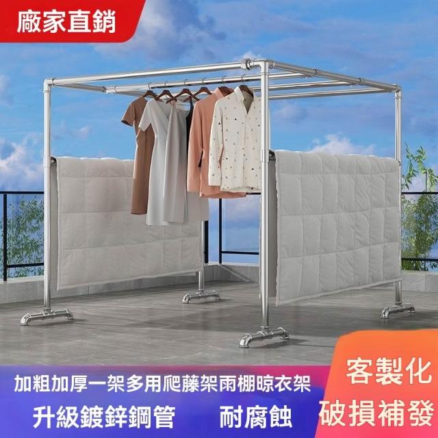 破損包賠免運🚛鍍鋅晾衣架 置地晾曬衣架 鋼管戶外陽臺防風落地大型鍍鋅晾衣架曬被加厚四方架爬藤架子客製化尺寸晾衣架