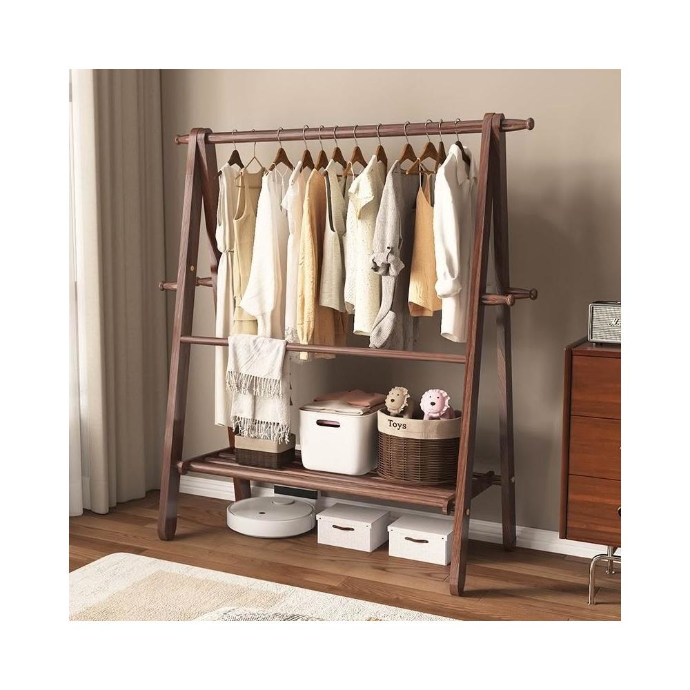 免運 實木衣架落地臥室衣服置衣架木質晾衣架玄關進門衣帽架立式掛衣架簡易衣櫃 落地衣架 簡易式單桿/雙桿衣架