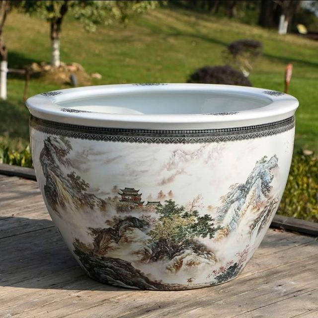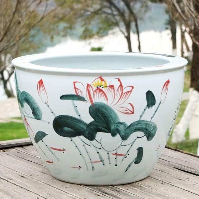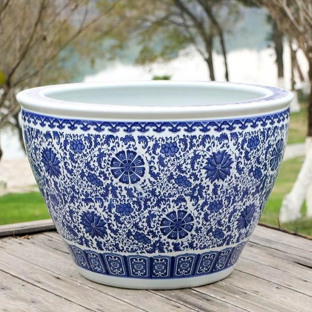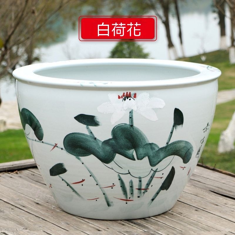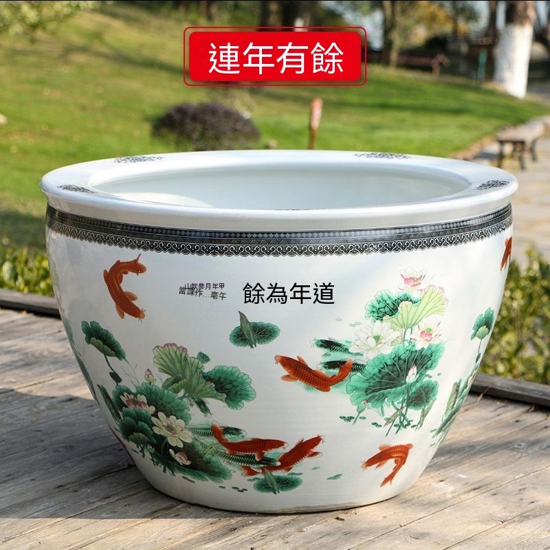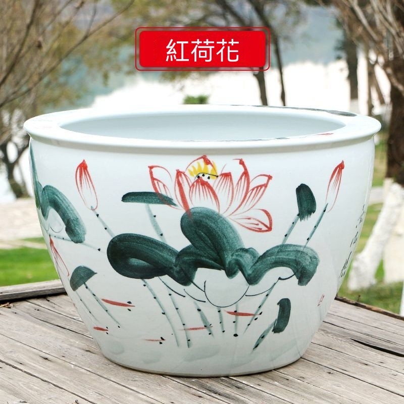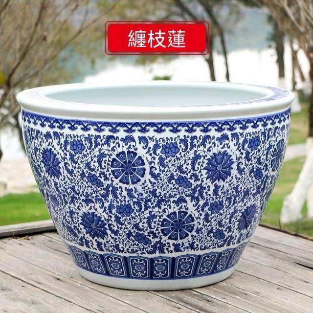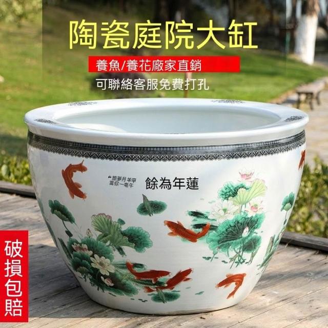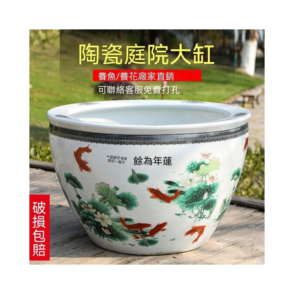 破損包賠免運🚛景德鎮陶瓷魚缸 加高魚缸 大號魚缸 花缸 養金魚缸青花瓷水缸金魚缸荷花碗蓮睡蓮盆烏龜缸可打統編