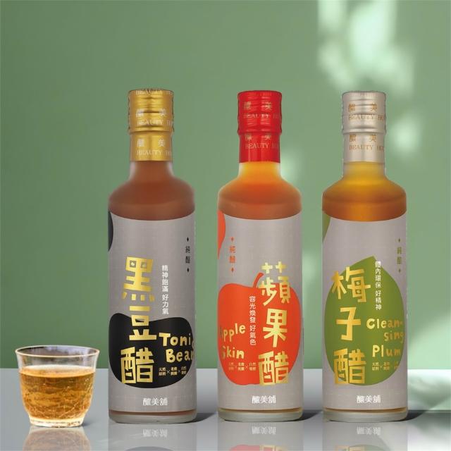 釀美舖黑豆醋/蘋果醋/梅子醋 250ml 3入組合(無加糖純醋)100%實果發酵