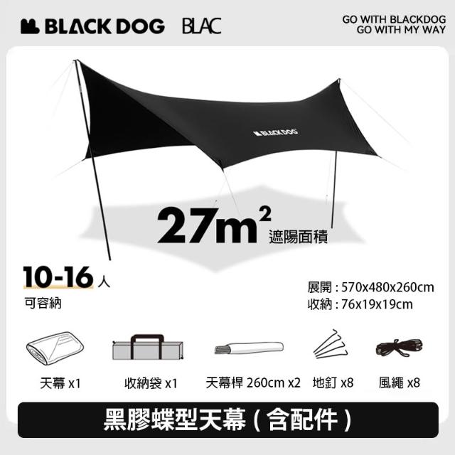 BLACKDOG黑狗三秒速開黑膠自動帳篷兩門四窗速搭帳沙灘帳240x240cm 附頂布地墊及配件