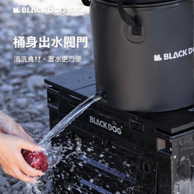 BLACKDOG黑狗戶外露營折疊水桶垃圾桶20L 出水閥門設計 可視化透明拉鍊桶蓋 冰桶水袋收納袋