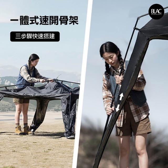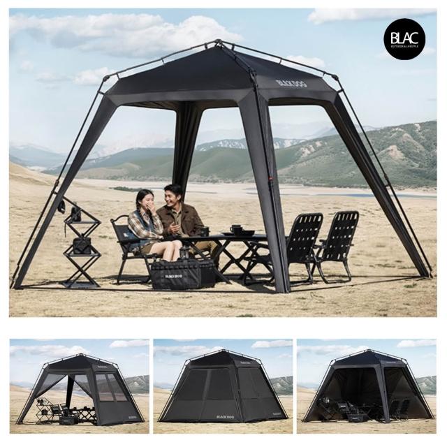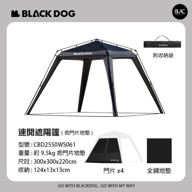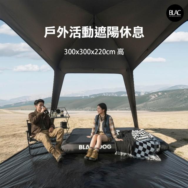 BLAC黑客BLACKDOG黑狗速開帳篷遮陽棚遮雨棚園遊會帳篷客廳帳300x300cm 全遮光鈦黑膠含四邊門片