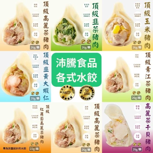 沛騰食品各式水餃 頂級高麗菜豬肉/韭菜水餃/玉米豬肉/韭黃大蝦仁 外皮Q彈帶勁 內餡飽滿多汁