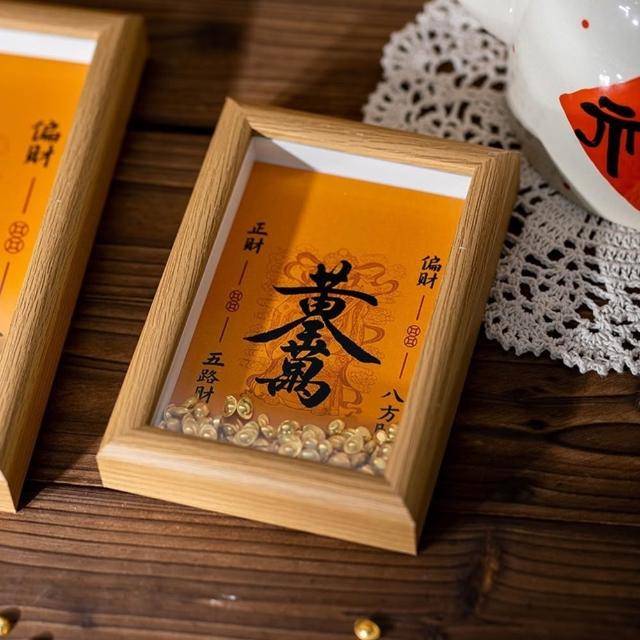 JIWU簡物 黃財神開財庫 6寸相框擺件 畫框喬遷元寶財庫 道家金庫鑰匙招財擺臺