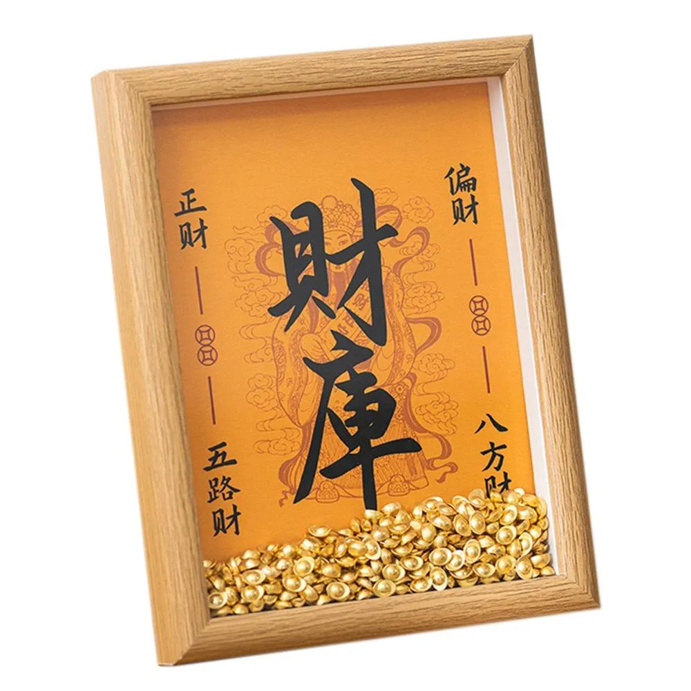 JIWU簡物 黃財神開財庫 6寸相框擺件 畫框喬遷元寶財庫 道家金庫鑰匙招財擺臺