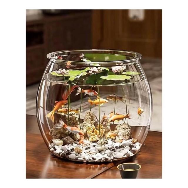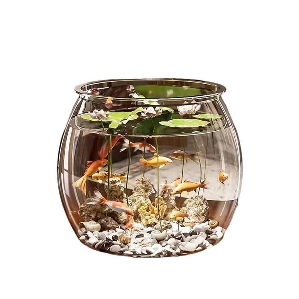 JIWU簡物 魚缸 亞克力魚缸 圓形金魚缸 生態小型家用孔雀魚烏龜飼養缸塑料魚缸