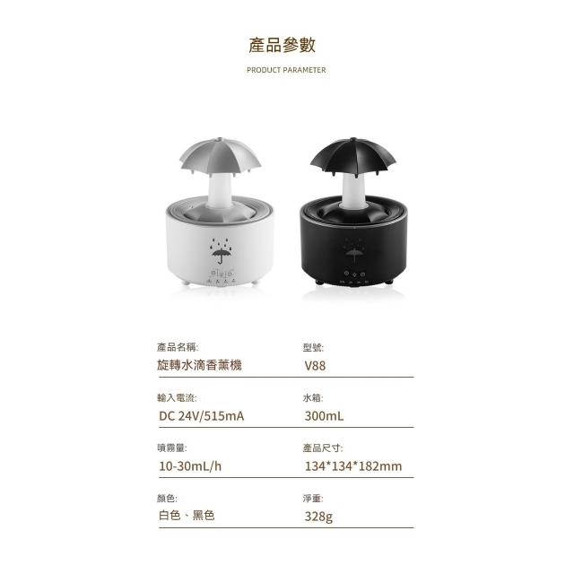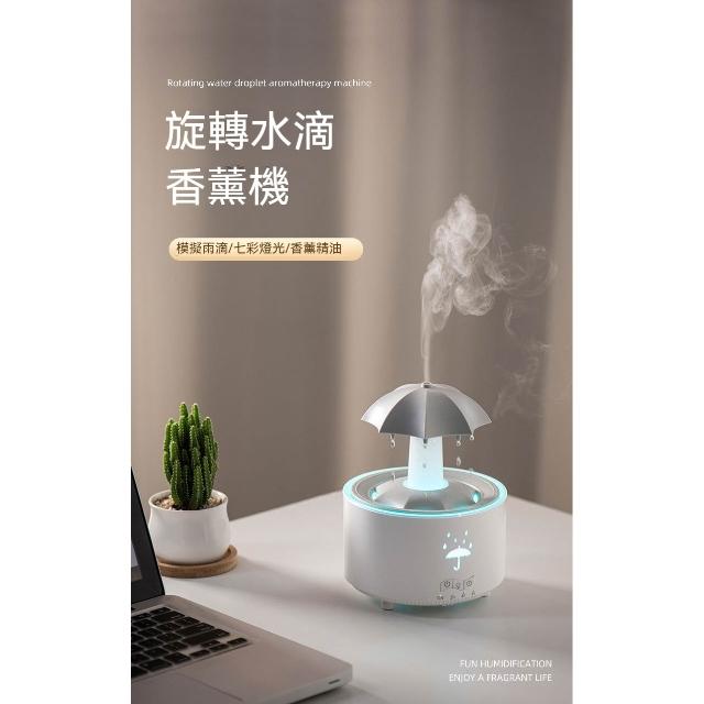 JIWU簡物 旋轉水滴雨滴香薰機 雨傘精油加溼器 家用桌面七彩氛圍燈