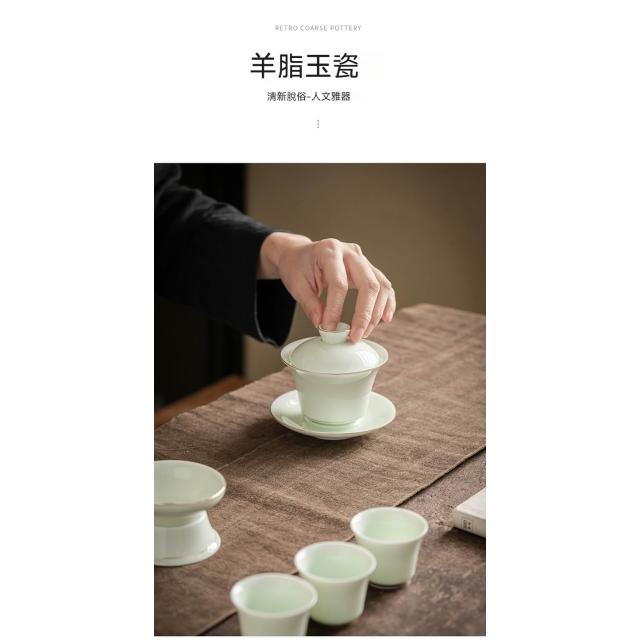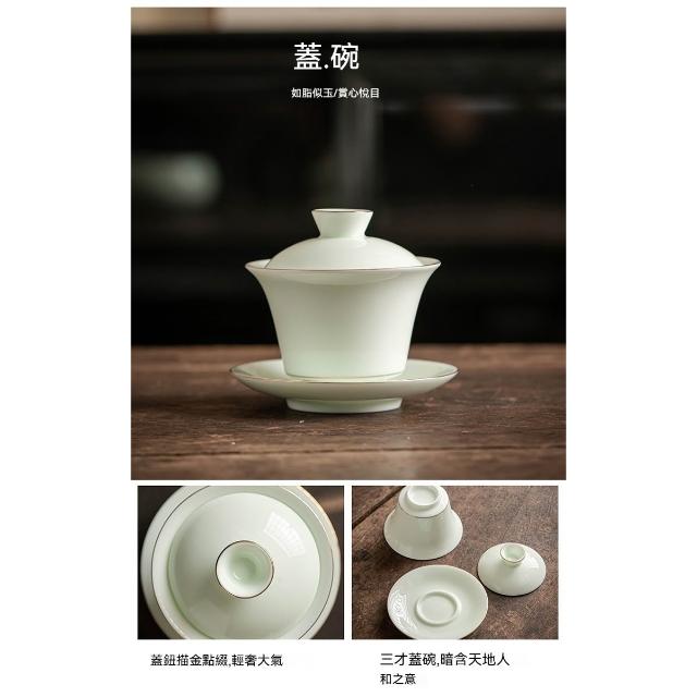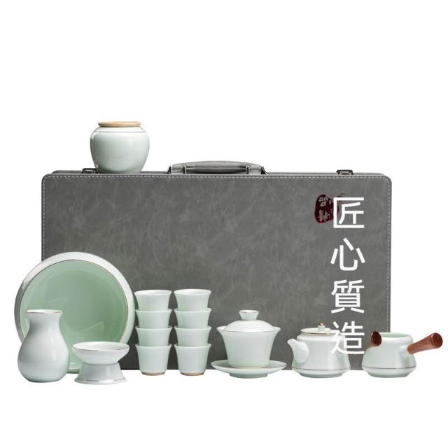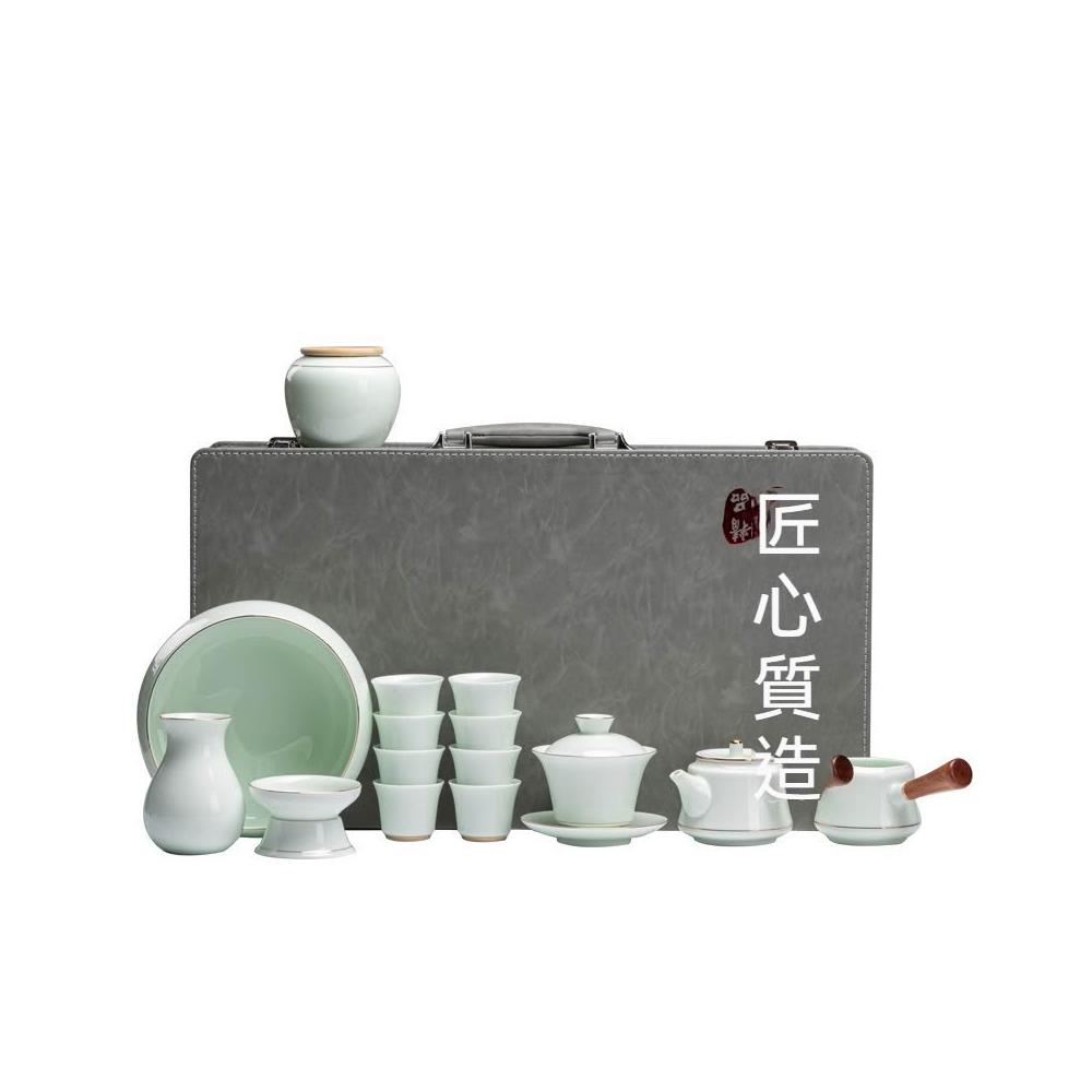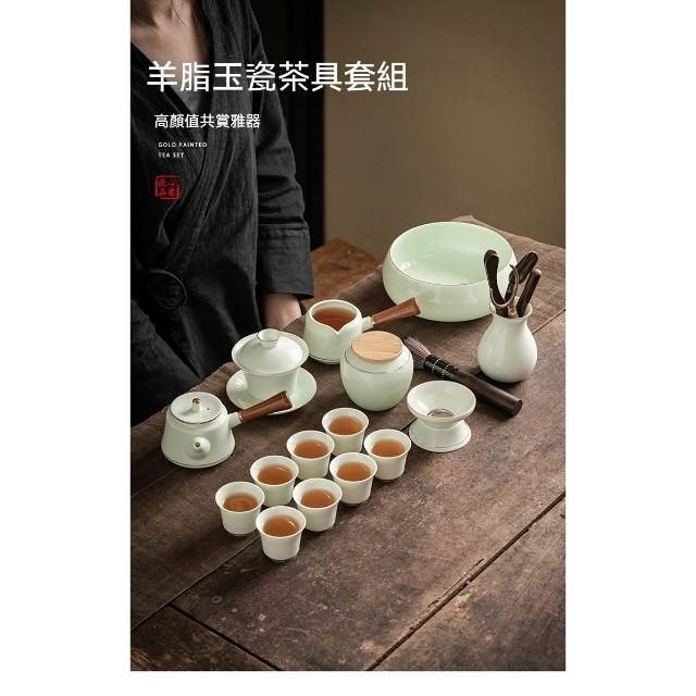 JIWU簡物 側把壺木質手柄翠綠大套裝功夫茶具 茶具套裝 整套茶杯 禮盒裝