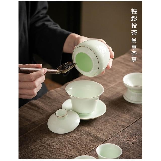 JIWU簡物 側把壺木質手柄翠綠大套裝功夫茶具 茶具套裝 整套茶杯 禮盒裝