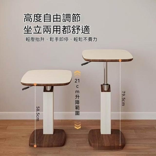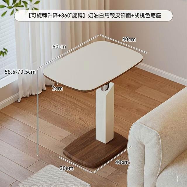 JIWU简物 馬鞍皮升降邊几 中古風可移動茶几 客廳升降桌 臥室床頭電腦桌