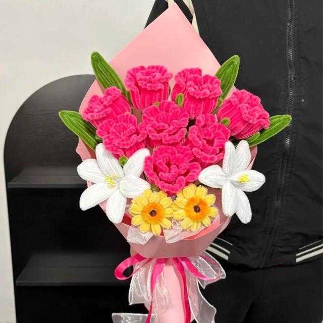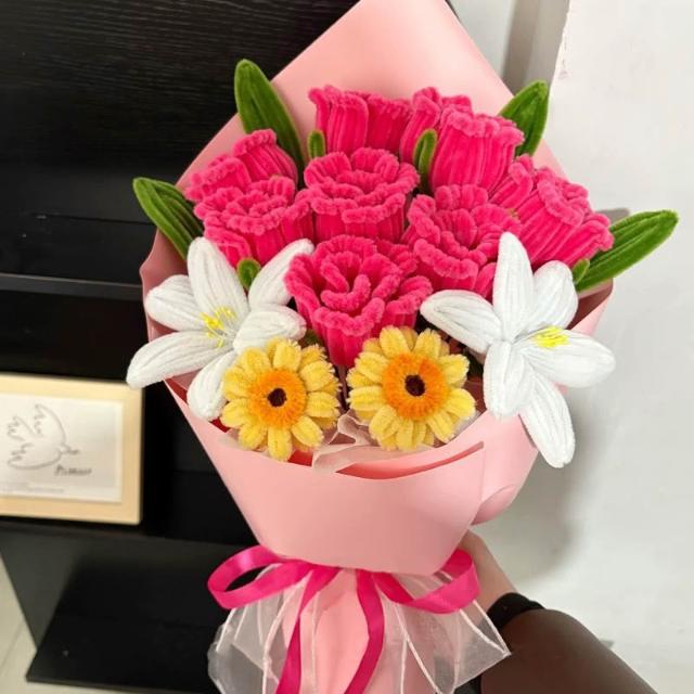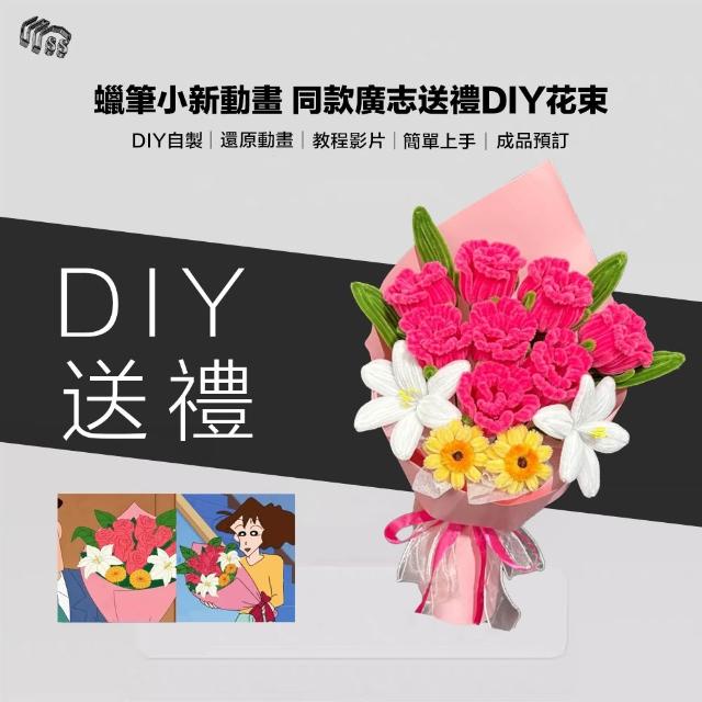 預購 蠟筆小新動畫 同款廣志送美冴花束 DIY花束 情人節送禮 生日節日送禮 永生花束 針織花束