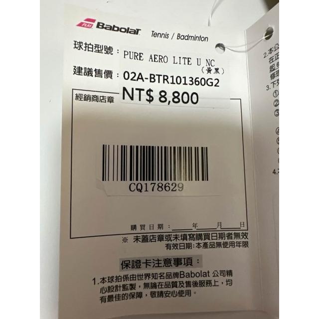 [佳龍體育]BabolaT Pure Aero Lite U NC黃黑色 網球拍 納達爾使用系列