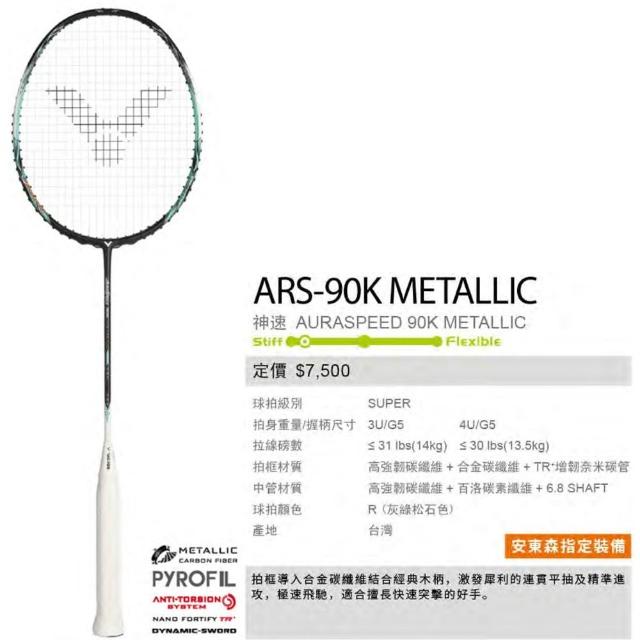 VICTOR 勝利體育ARS-90K METALLIC-R 神速羽球拍-台灣製 羽毛球 球拍 訓練 (附穿線請備註磅數)