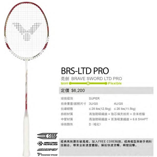 VICTOR 勝利體育BRS-LTD PRO-D 亮劍羽球拍-羽毛球拍 空拍 訓練 勝利 亮劍系列 菱形破風框 (附穿線請備註磅數)