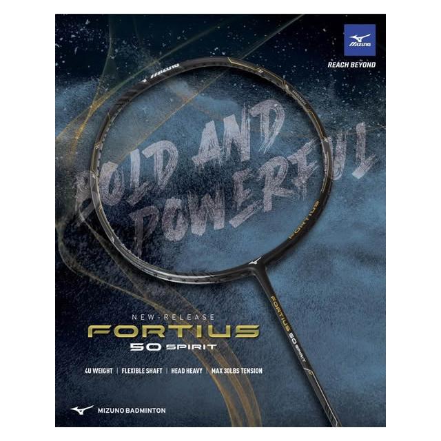 MIZUNO 美津濃羽球拍 FORTIUS 50 SPIRIT 中階羽球拍 空拍 附原廠拍袋 黑金 4U5