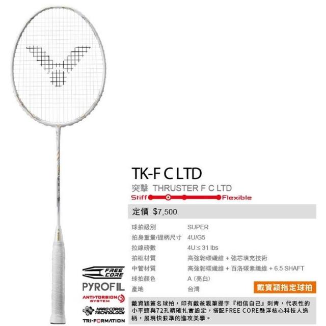VICTOR 勝利體育TK-F C LTD A 羽球拍 戴資穎簽名拍 羽球拍 突擊 重頭 白X金 空拍 4U