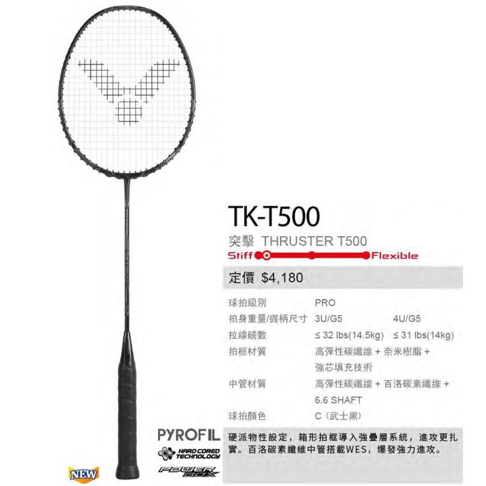 VICTOR 勝利體育TK-T500 C 突擊羽球拍 攻擊型羽拍 硬派物性黑武士 中階重殺進攻拍 (附穿線請備註磅數)