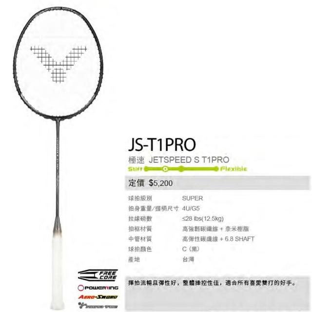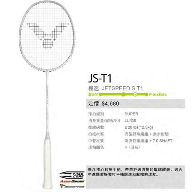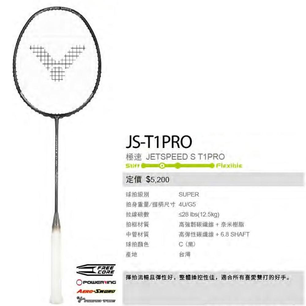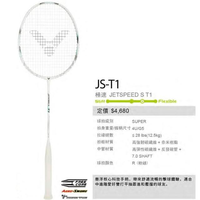 VICTOR 勝利體育JS-T1 JS-T1PRO 極速羽球拍 揮拍順暢 手感舒適 中高階羽球拍 (附穿線請備註磅數)