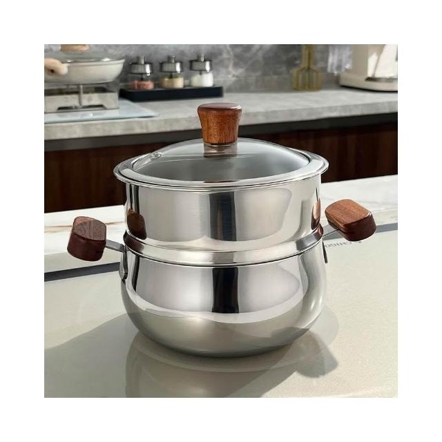 雙耳鍋 不銹鋼鍋 湯鍋 燉鍋 耐熱砂鍋 不粘鍋 燉煮鍋 蒸鍋 帶蒸屜