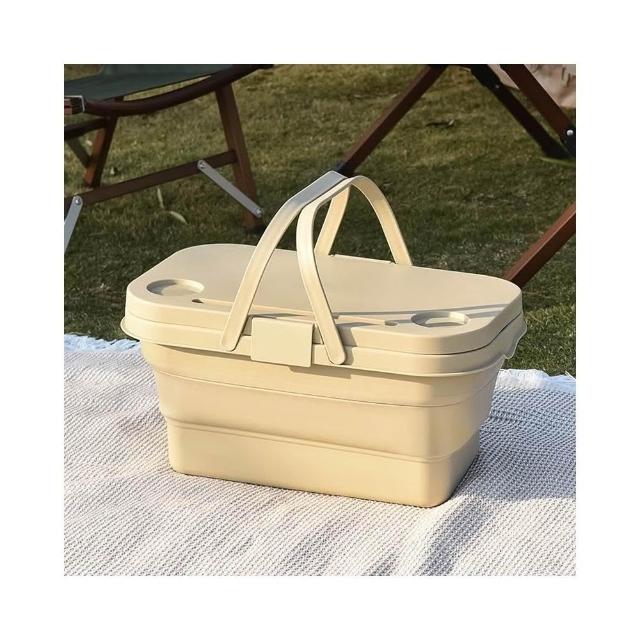 戶外野餐籃 可折疊籃子 多功能帶蓋露營籃子 露營野炊便攜手提籃 購物籃 水果籃子