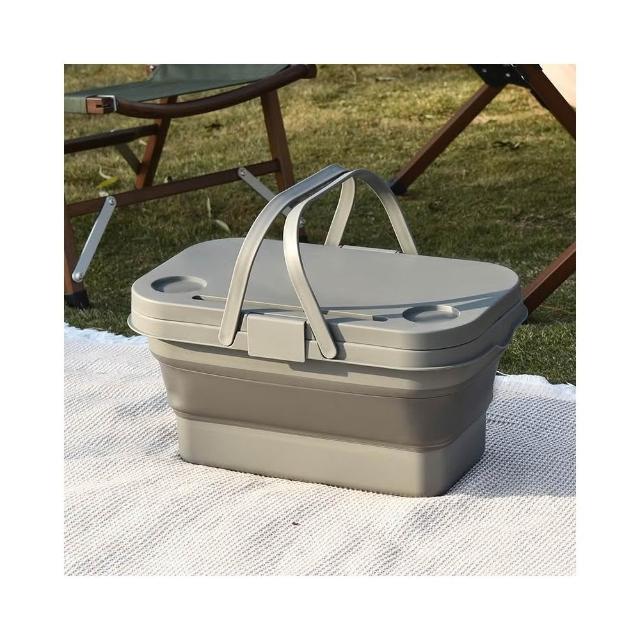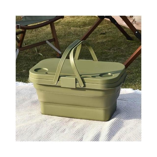 戶外野餐籃 可折疊籃子 多功能帶蓋露營籃子 露營野炊便攜手提籃 購物籃 水果籃子