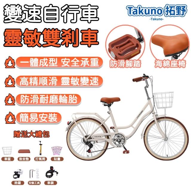 拓野 腳踏車 自行車 20-24吋通勤變速車(高碳鋼車架+雙碟煞 送大容量購物籃|承重150kg|捷運/上班/買菜專用