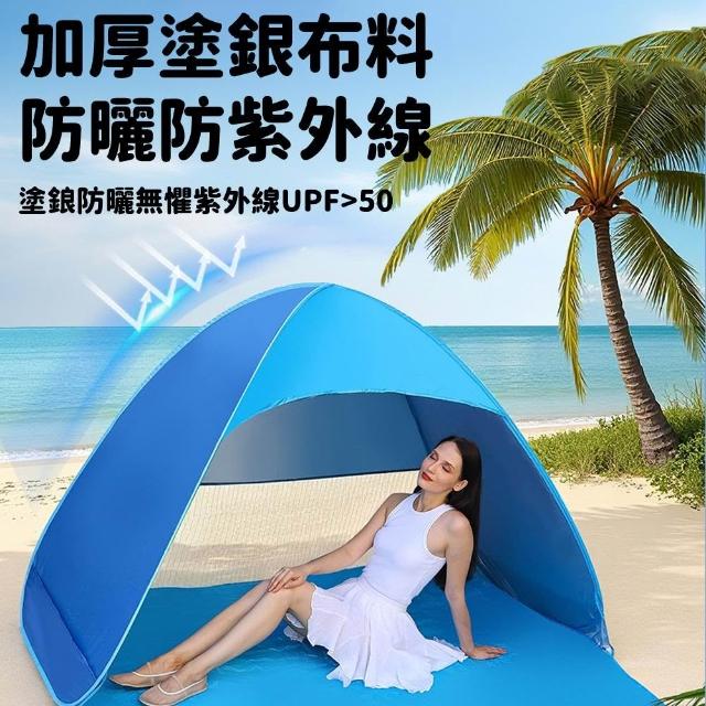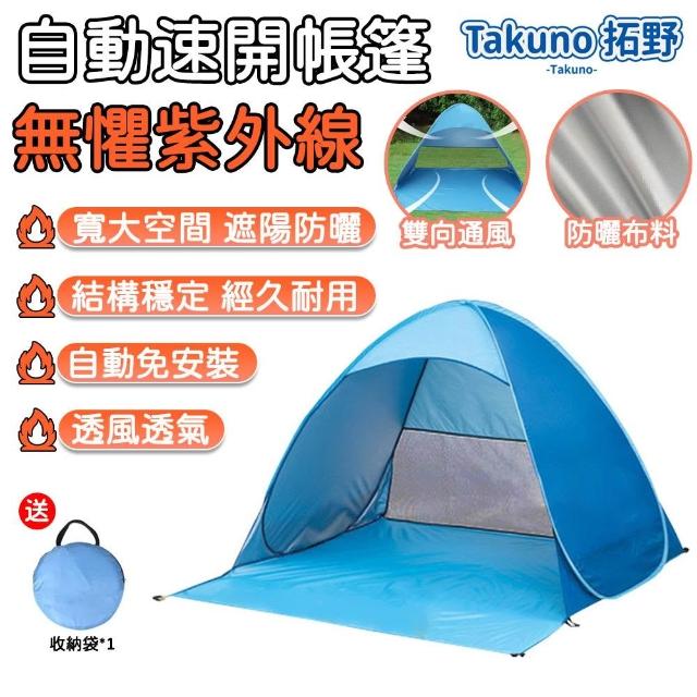 拓野 沙灘帳篷 全自動速開遮陽帳篷 拋帳 3-4人超大空間(2秒搭建 UPF50+防曬 防蚊紗網|海邊露營必備 送地釘)
