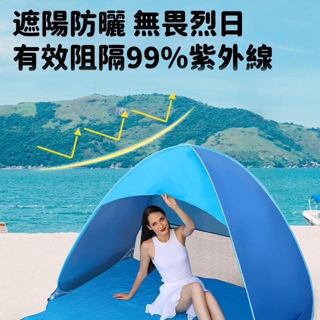 拓野 沙灘帳篷 全自動速開遮陽帳篷 拋帳 3-4人超大空間(2秒搭建 UPF50+防曬 防蚊紗網|海邊露營必備 送地釘)