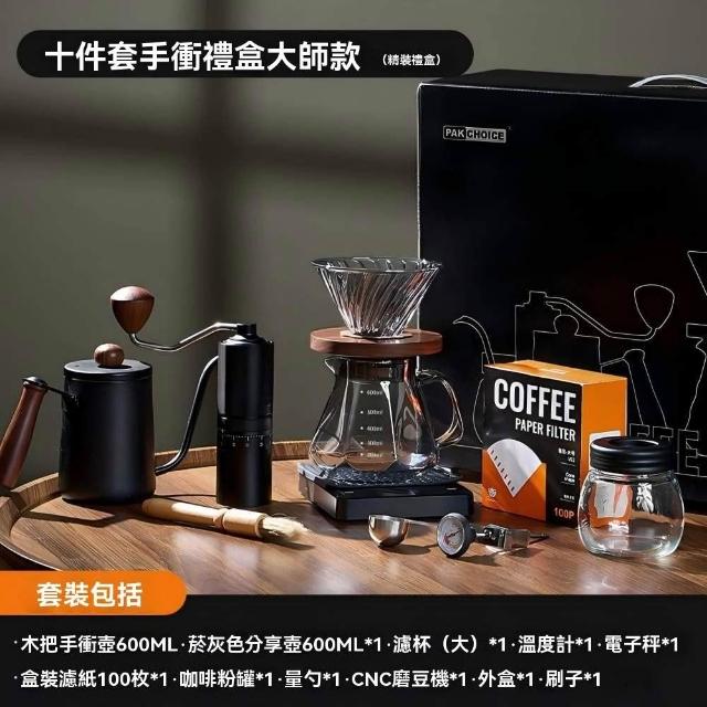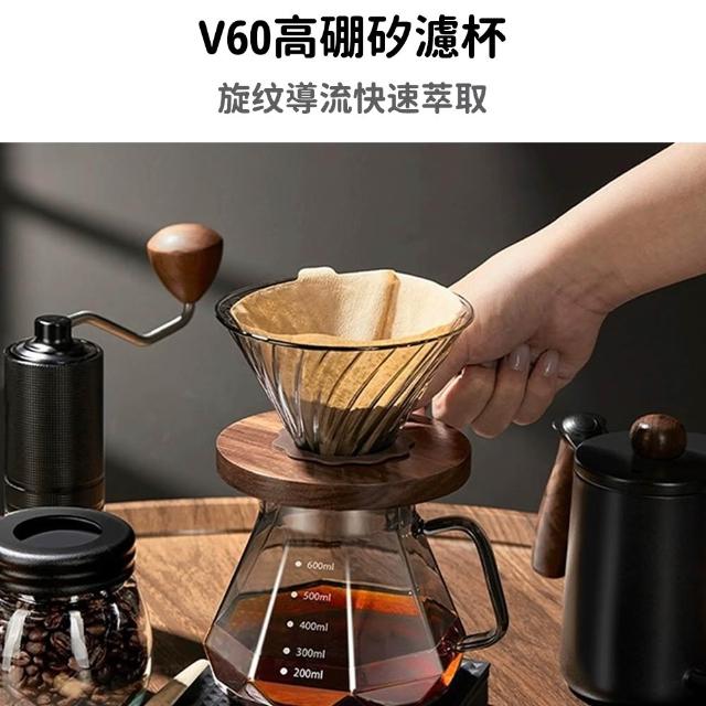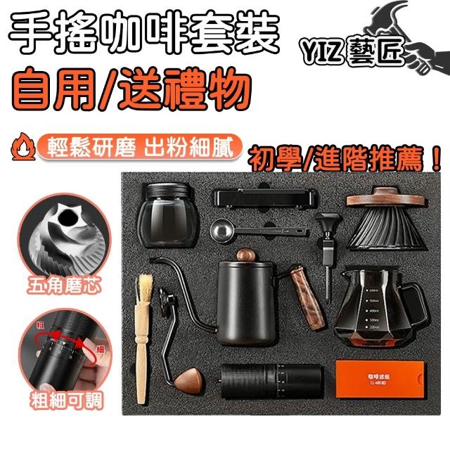 YIZ 手沖咖啡組 手沖咖啡套裝禮盒(V60濾杯+手沖壺+磨豆機 304不銹鋼材質 送電子秤+咖啡罐 家用/送禮首選)