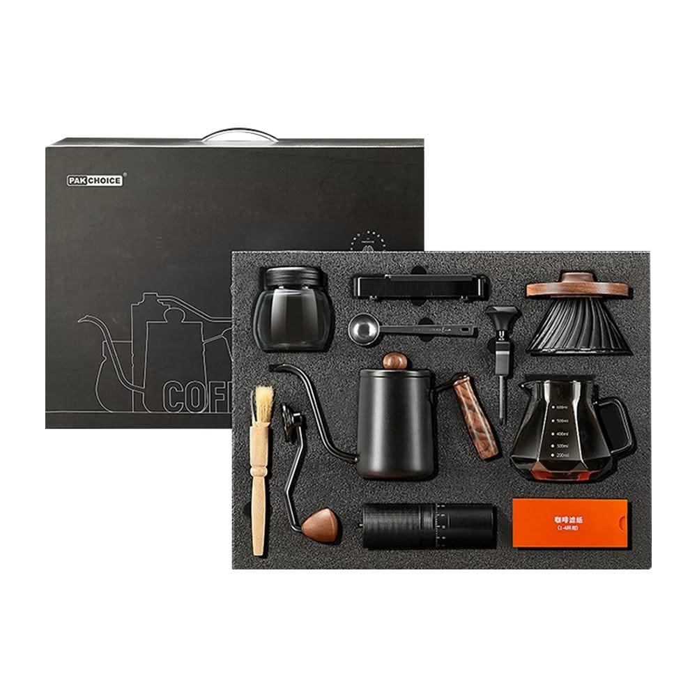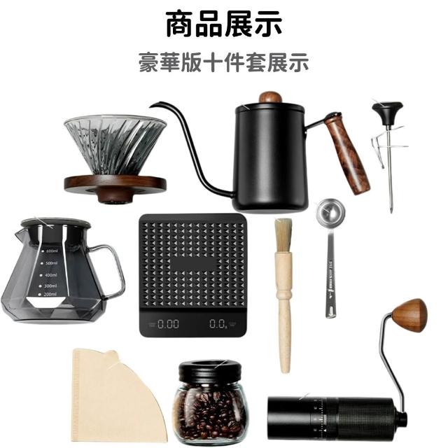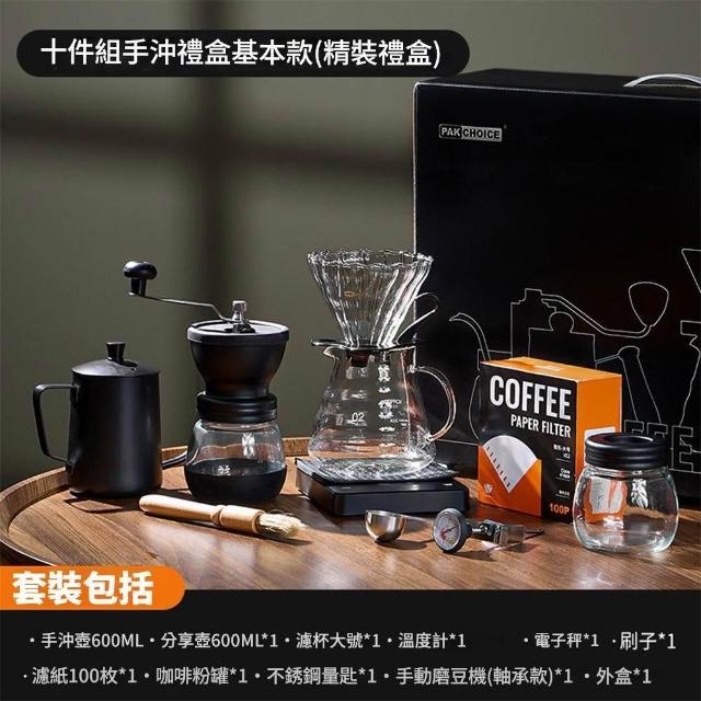 YIZ 手沖咖啡組 手沖咖啡套裝禮盒(V60濾杯+手沖壺+磨豆機 304不銹鋼材質 送電子秤+咖啡罐 家用/送禮首選)