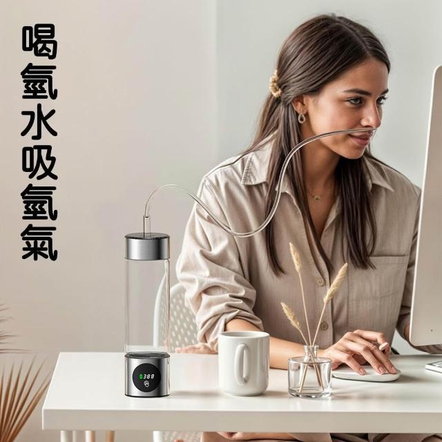 YIZ 富氫水杯 倒計時款水素水杯 電解水(不挑水質 T-C充電 5分鐘製氫+460ml大容量 送禮盒+吸氫管)