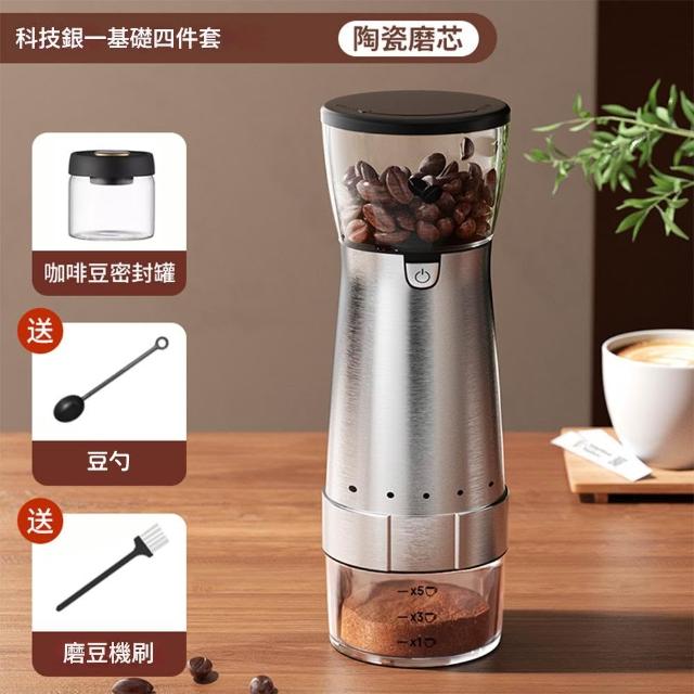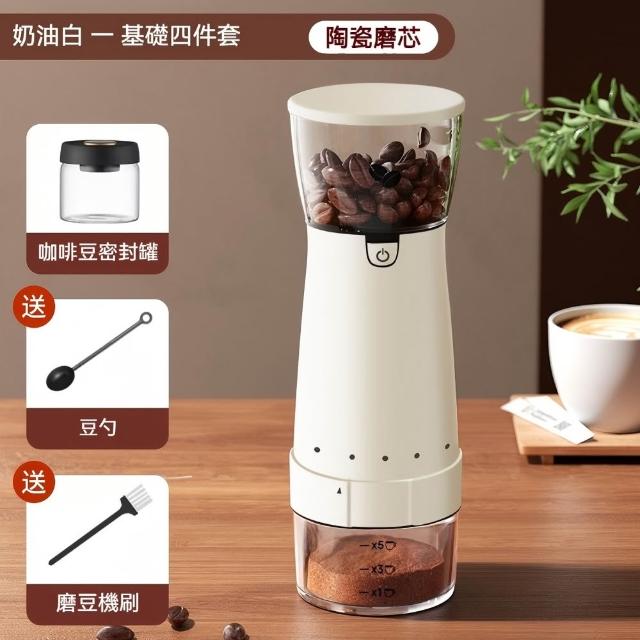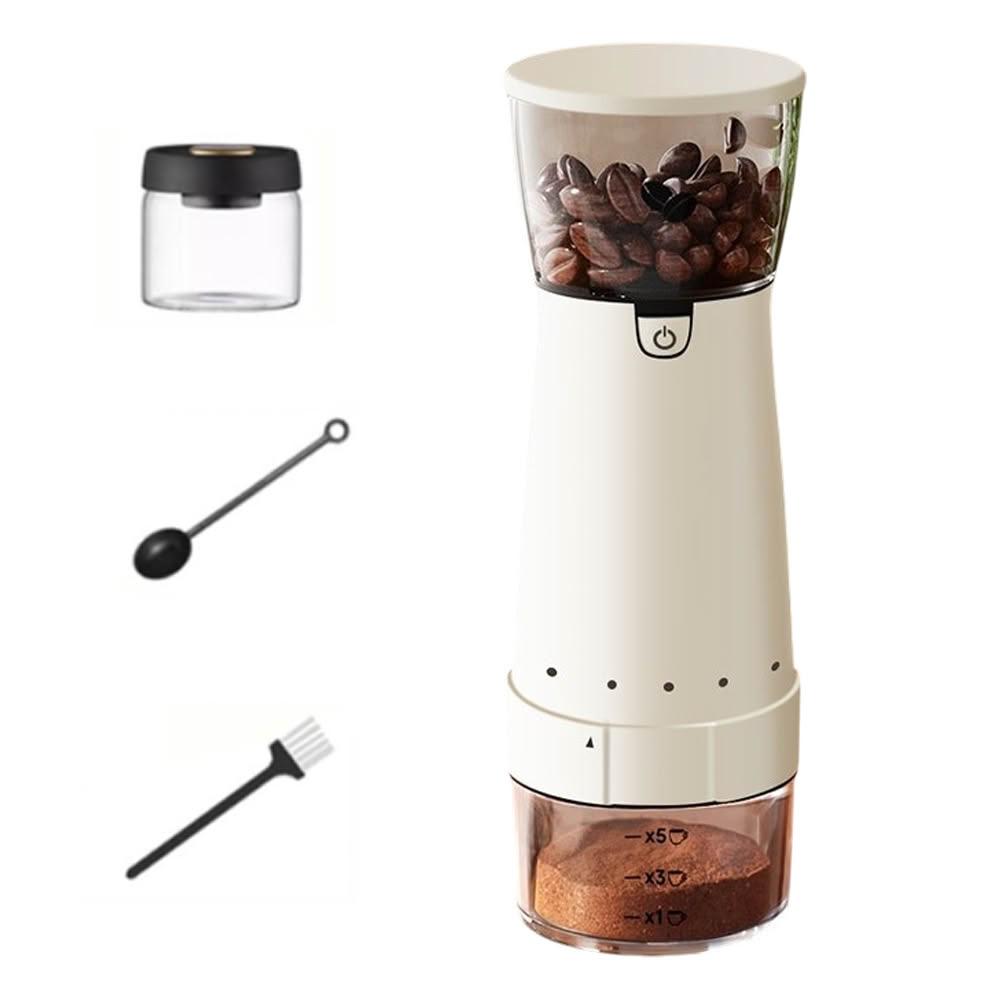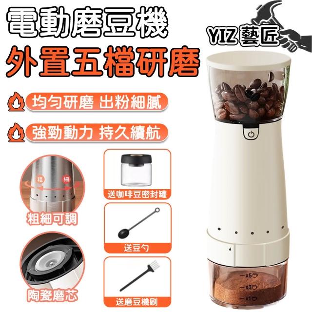 YIZ 電動磨豆機 磨完自停款 全自動便攜(五檔粗細調節 陶瓷磨芯 低噪銅電機 送清潔刷+豆勺)