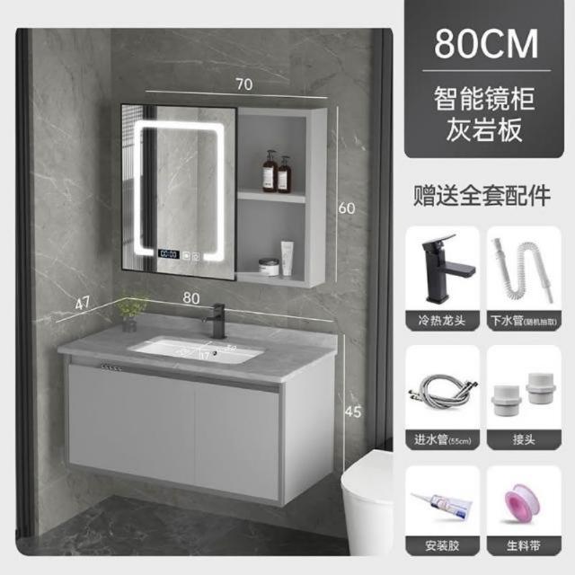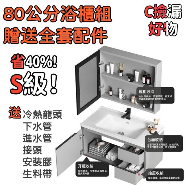 C 浴櫃組 浴室收納櫃 80公分 智能鏡櫃 陶瓷洗臉盆(送冷熱龍頭 +下水管+進水管+接頭+安裝膠+裏膠帶)